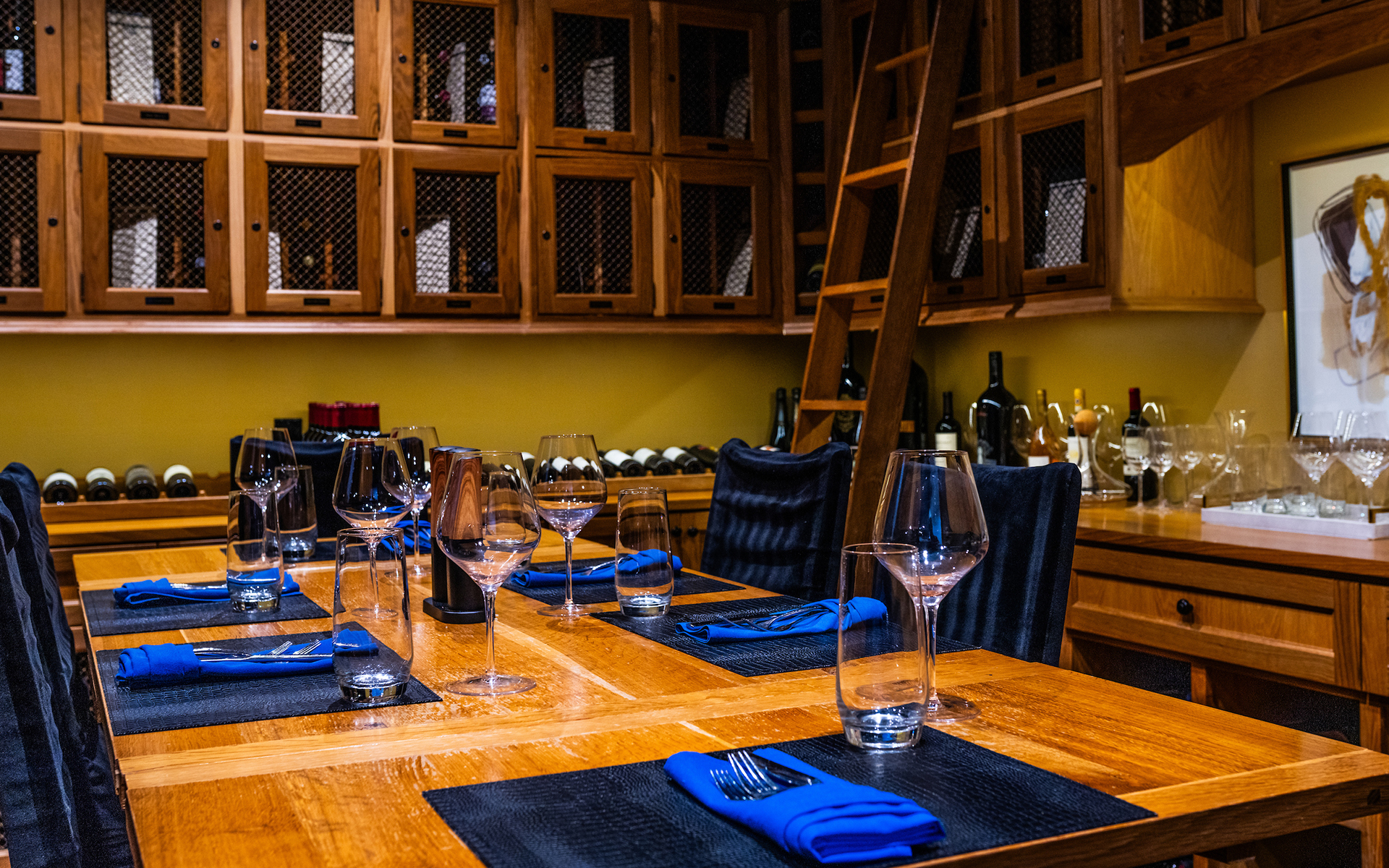The Wine Room is home to 58 wine lockers, each available for one-year rental periods and able to hold up to 12 bottles of your favorite wines. The room's private dining table can comfortably seat up to eight guests for a truly unique dining experience.