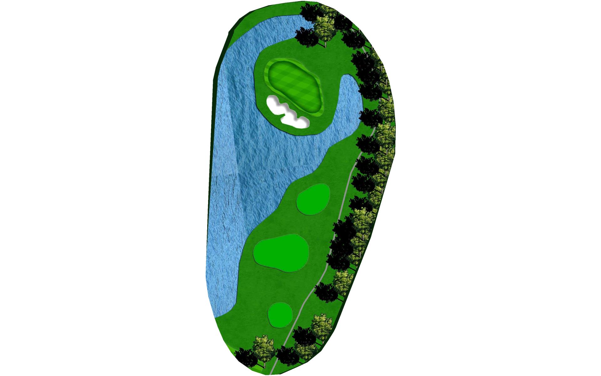 The final hole is the hardest par 3 on the course. With a forced carry over water, aiming right and playing a right to left shot is ideal if you wish to avoid all the trouble that surrounds this green.