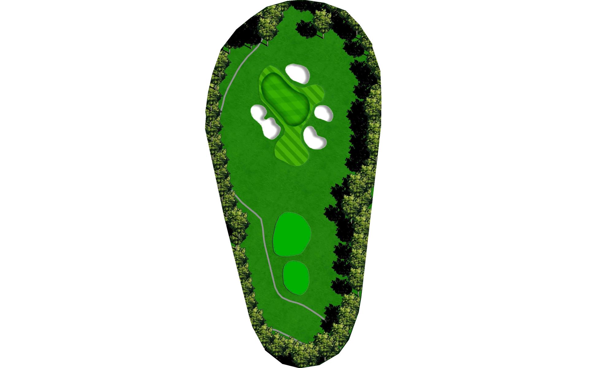 This slight dog leg left par 4, requires a tee shot up the middle or right side of the fairway. A long hitter can be aggressive and go over the right edge of the bunker. A good tee shot leaves you in a spot to attack with a wedge in hand.