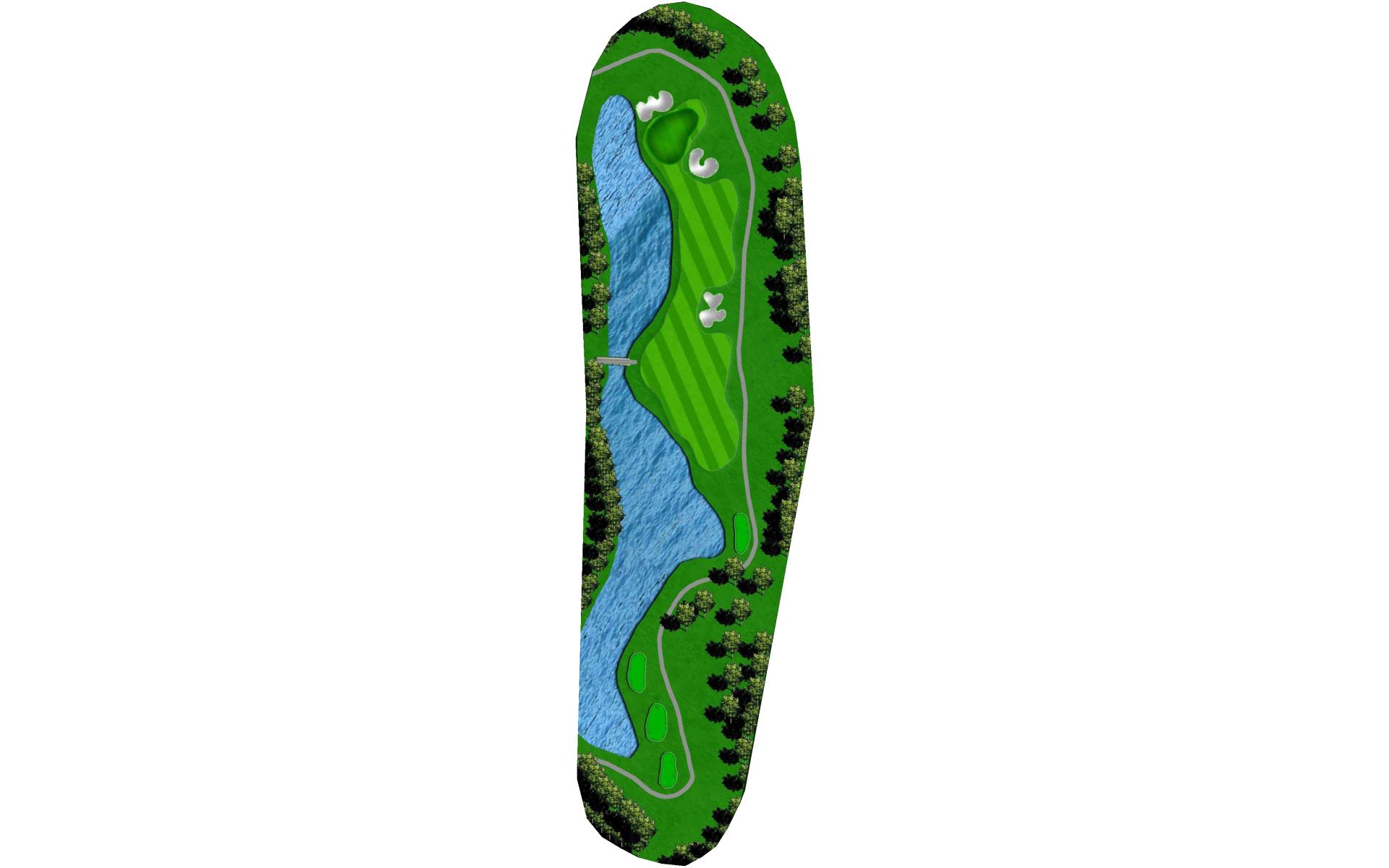 With a forced carry off the tee and water down the entire left side, this is the hardest hole on the course. Aim your tee shot just short of the bunker to leave yourself a 125 to 175 yard shot to the green. With a huge slope in the middle of the green, your approach shot should land near the front of the green if you wish to have a putt for birdie.
