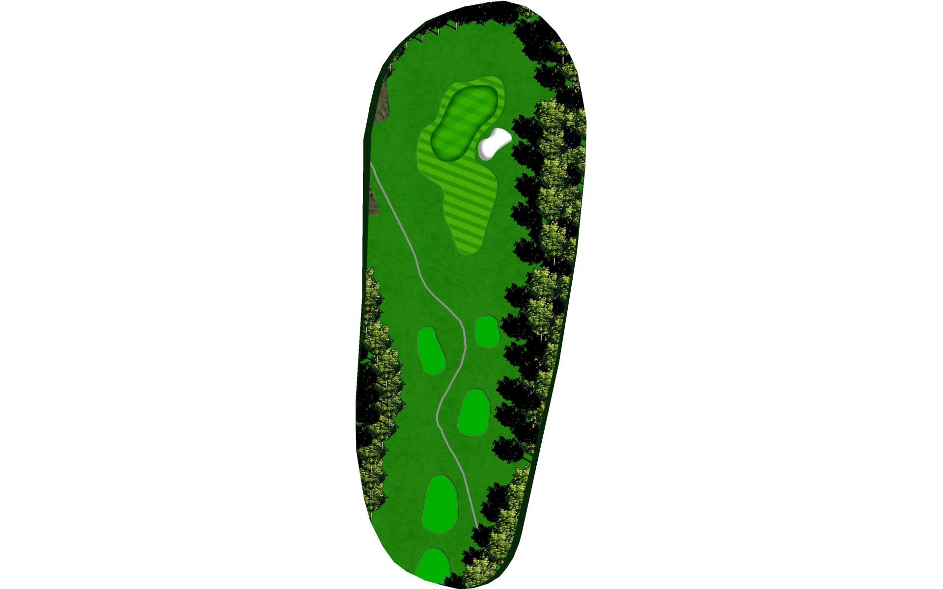 A short par 3 where the green slopes away from you off the tee. A high tee shot is ideal if you want to guarantee your ball to stay on the green. Trouble short and long.