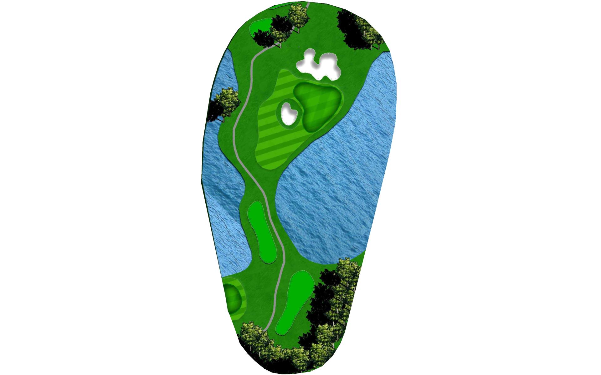 This short par 3 is surrounded by bunkers both short left and long, and water on the right. Aim for the middle of the green with the club of your choice and hope you hit it straight