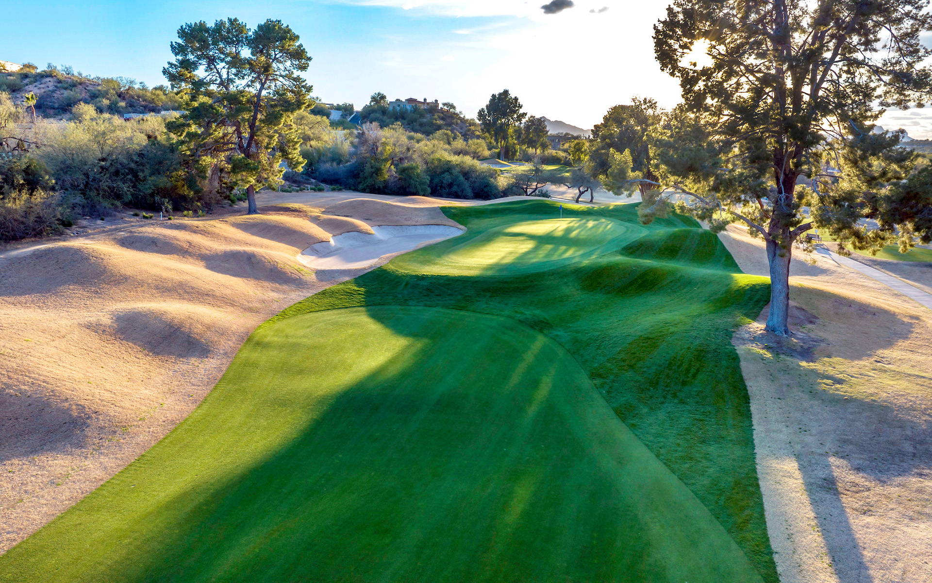 In 2023, Oro Valley Country Club underwent a comprehensive renovation to enhance your golfing experience. The golf course now boasts pristine TifEagle Bermuda grass greens and lush TiffTuff collars, offering unparalleled putting pleasure and elegance to every shot. The meticulous renovation extended to the bunkers, providing strategic challenges on both the course and the practice facilities. Beyond the course, our recent bunker renovation reshaped bunkers on the chipping green to closely mimic the challenges you'll encounter on the course. Additionally, the signature lake on hole 18 was enhanced to ensure its enduring beauty for generations to come, contributing to an elevated and refined golfing experience at Oro Valley Country Club.